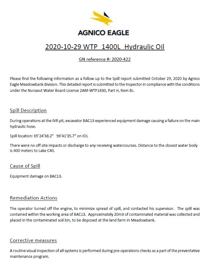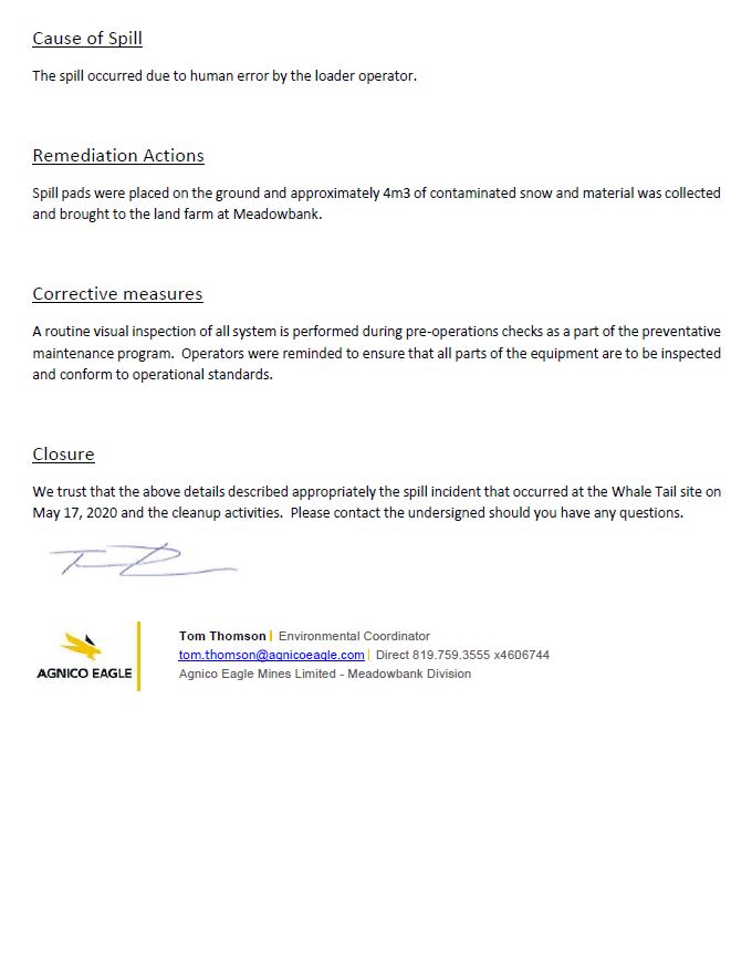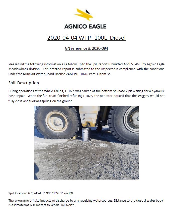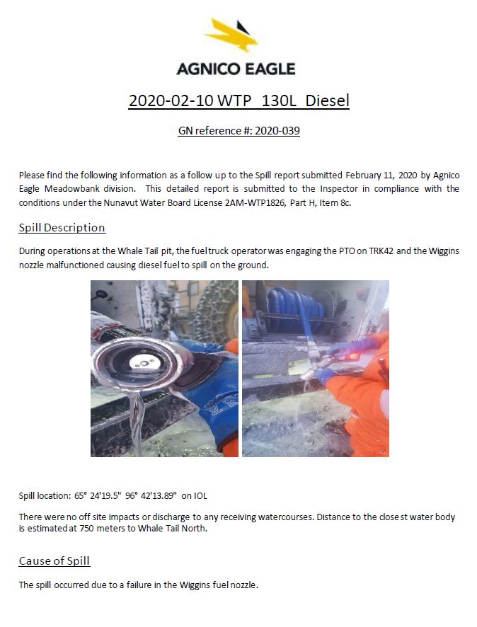 200128 2AM-WTP1826 Agnico Eagle - Whale Tail spill - 2019-339 - Follow-up Report No.2-IMLE.pdf